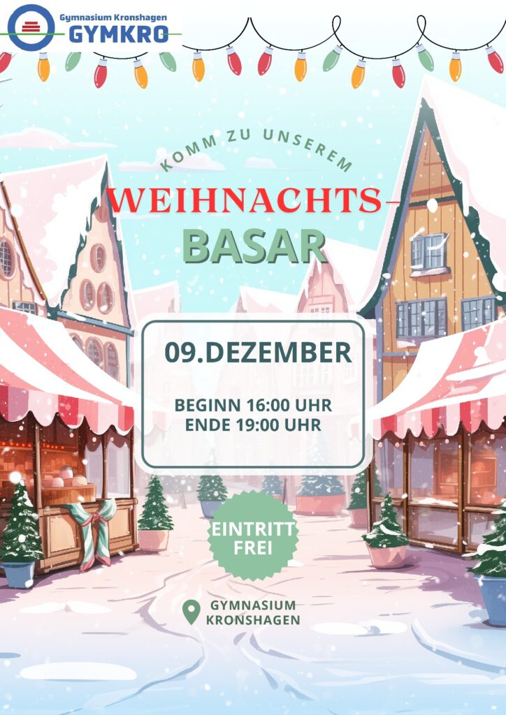 Es gibt ihn endlich wieder, den Weihnachtsbasar am Gymkro !! Und unsere SV hat ihn organisiert. Die Klassen und Kurse werden von ihren Klassennlehrkräften unterstützt. Es wird eine tolle, vorweihnachtliche Atmosphäre im Gymkro zu erleben sein.